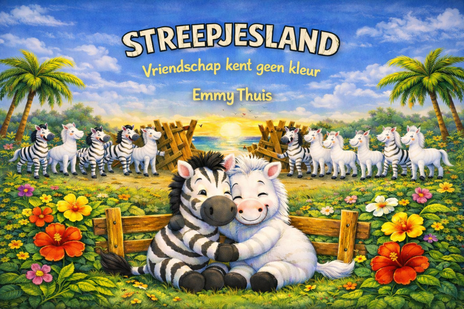 Streepjesland is een mooi kinderboek over vriendschap, verschillen en samenleven. Op het mooie eiland Sarbez wonen witte en gestreepte zebra’s al jarenlang gelukkig samen. Maar dan komt er een nieuwe burgemeester en die besluit dat ze te verschillend zijn om bij elkaar te wonen. Er wordt een groot hek op het eiland gezet en het eiland wordt verdeeld in Witjesland en Streepjesland. Het is nu niet meer toegestaan om vrienden te zijn met zebra’s van de andere kant van het hek.